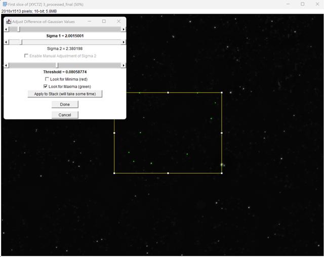 Note: Python will call Fiji to perform image registration. This requires users to manually adjust the cropping rectangle to the center and set the threshold to approximately 0.08.
