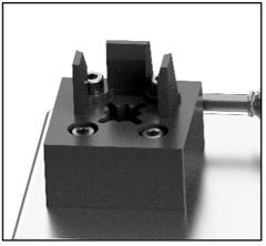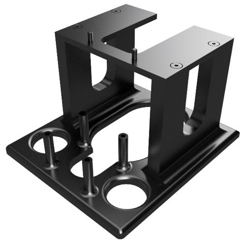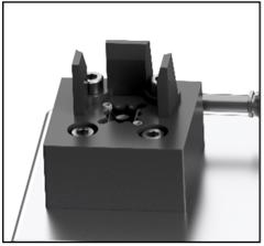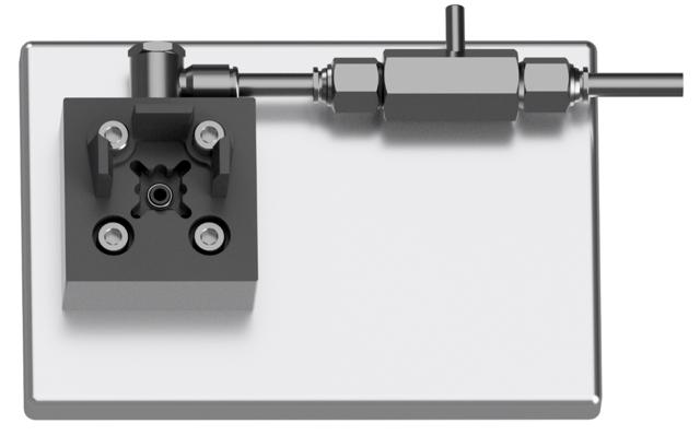 Tap the 3D printed base with M5 tap for the 4 flat head screws. Attach the adhesive-back bumpers to the underside of the base and attached the lab stand plate with 4 flat head screws. The assembled system is then attached to the lab stand with the two button head hex drive screws.