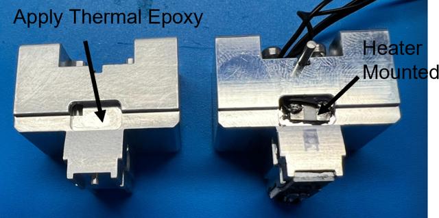 The TIRF LEDs and heaters are mounted directly to heat sinks, which do double duty: they both dissipate heat from the high-power LEDs and maintain a consistent temperature when the sequencing reservoir is inserted into the main body.