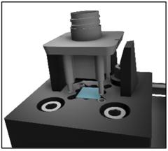Situated above the camera assembly, this section contains the motorized filter wheel with optical tubing and an imaging lens, allowing for 4x magnification with seamless switching between different fluorescent channels.