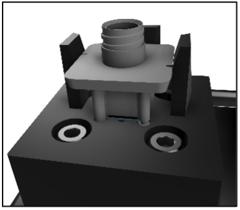 Attach the three aluminum legs with three Phillips flat head screws (92010A424) to the filter housing lid and slide the alignment brace over the three legs and tighten the set screws (92015A104) to lock the brace in place. The thumb screws (92545A119) are adjusted to brace and align the optical stack.