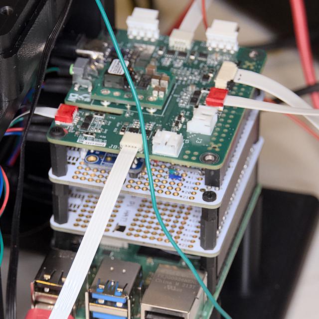 The electronics of the 454 sequencer primarily live in custom Raspberry Pi HATs.